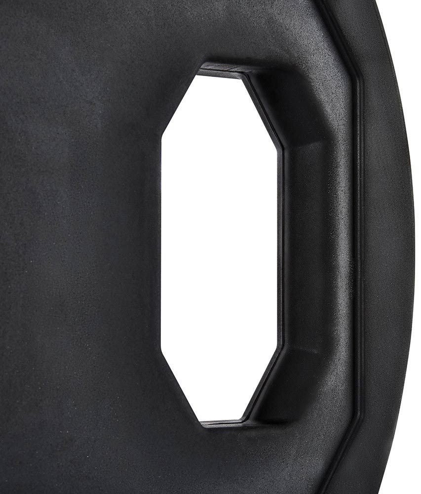 Logo und kg-Angabe sind in erhabenen Design. Der farbcodierte Außenring optimiert die Identifikation der Gewichtsgröße. Das innenliegend abgesetzte Dodekagon-Design (12-Eck) verleiht der Scheibe einen sehr kraftvollen Ausdruck.