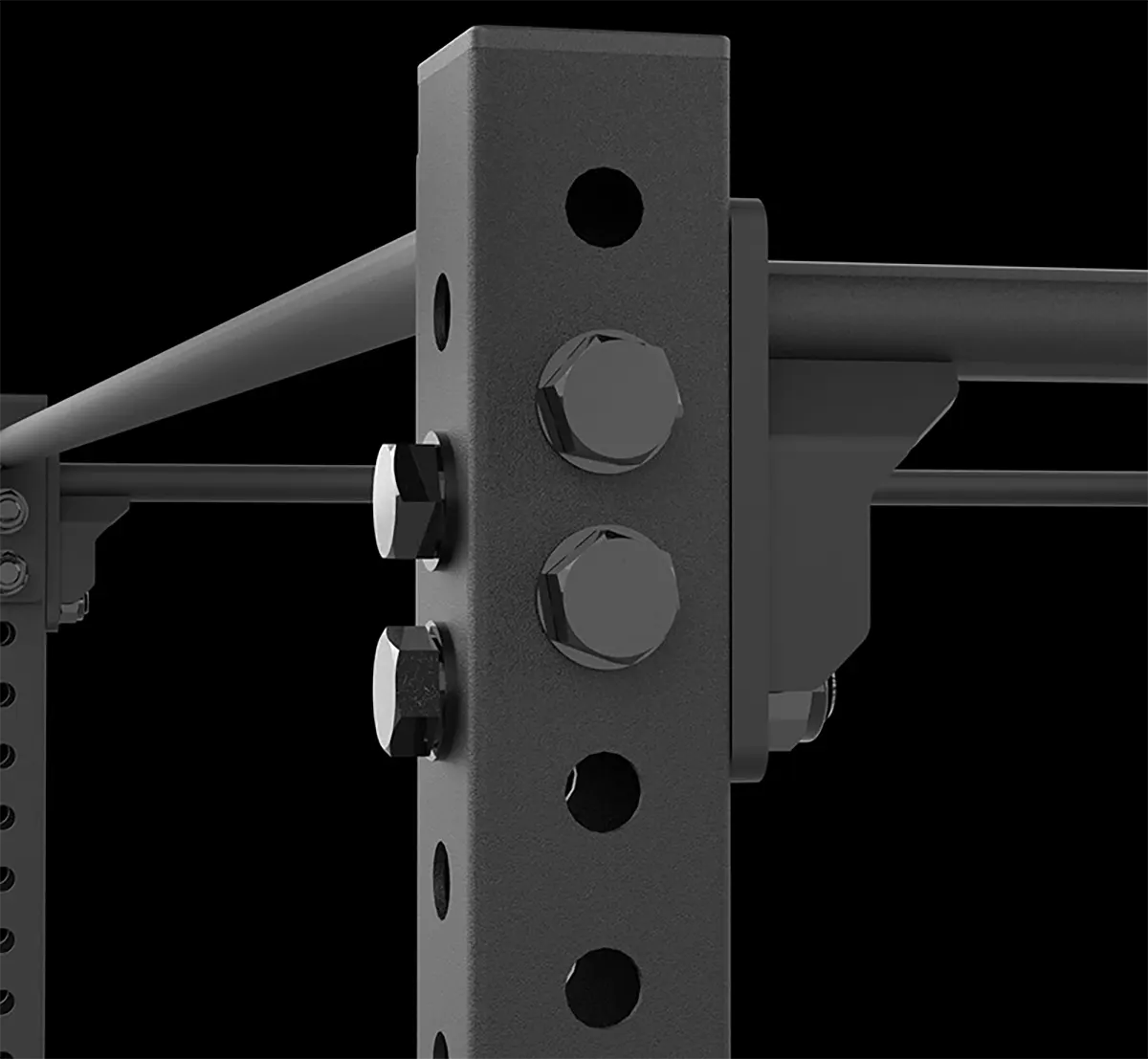 Mit optionalem Zubehör (separat erhältlich) lässt sich das RIG flexibel erweitern – etwa durch J-Hooks, Dip-Barren, Kniebeugen Anbaustation oder Hantelablagen.