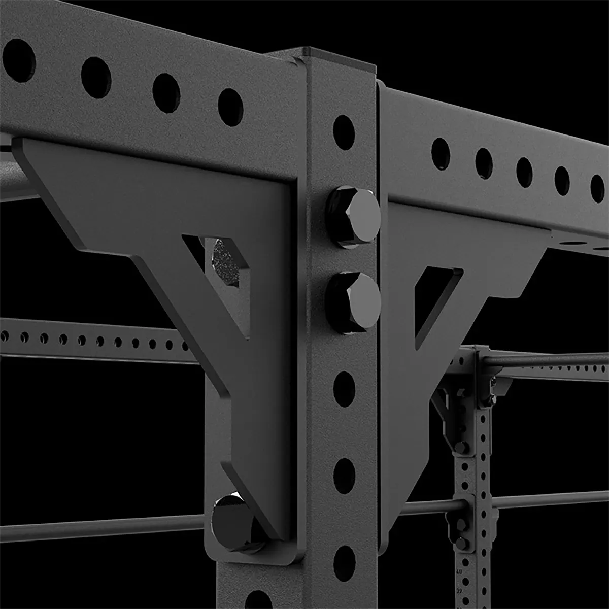 Mit optionalem Zubehör (separat erhältlich) lässt sich das RIG flexibel erweitern – etwa durch J-Hooks, Dip-Barren, Kniebeugen Anbaustation oder Hantelablagen.