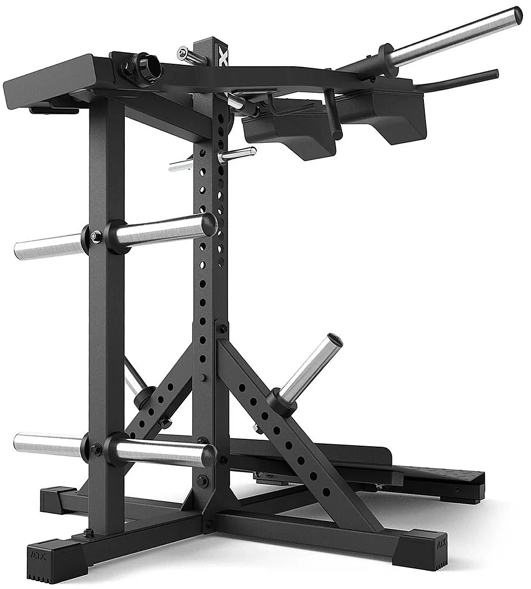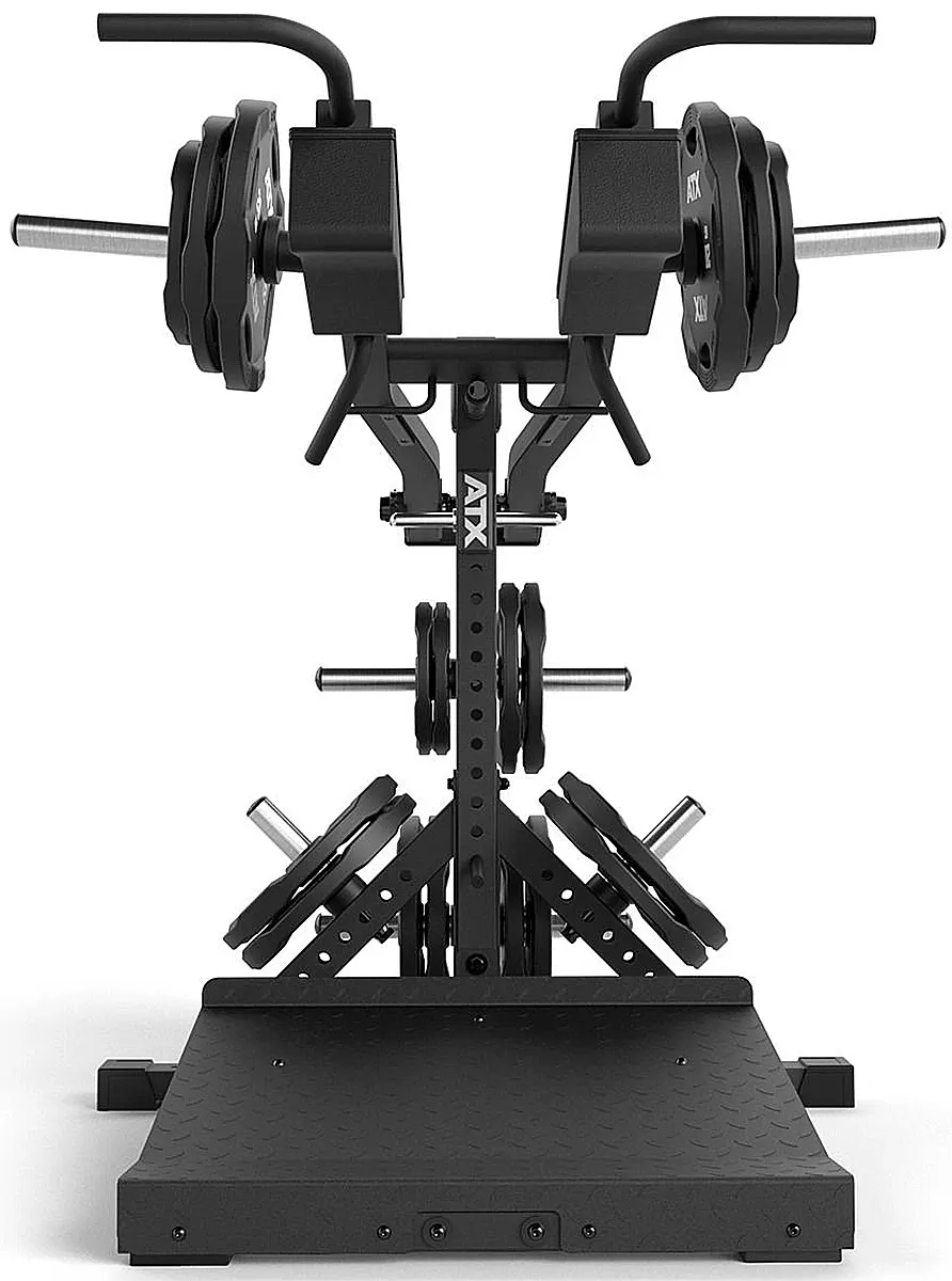 Die ATX® Lever Arm Squat PRO 3in1 ermöglicht nicht nur anatomisch korrekte schwere Kniebeugen und Wadenheben/stehend, sondern beinhaltet zusätzlich eine Viking Press, welche die wirkungsvolle Übungsvariante des Schulterdrückens effizient ermöglicht.