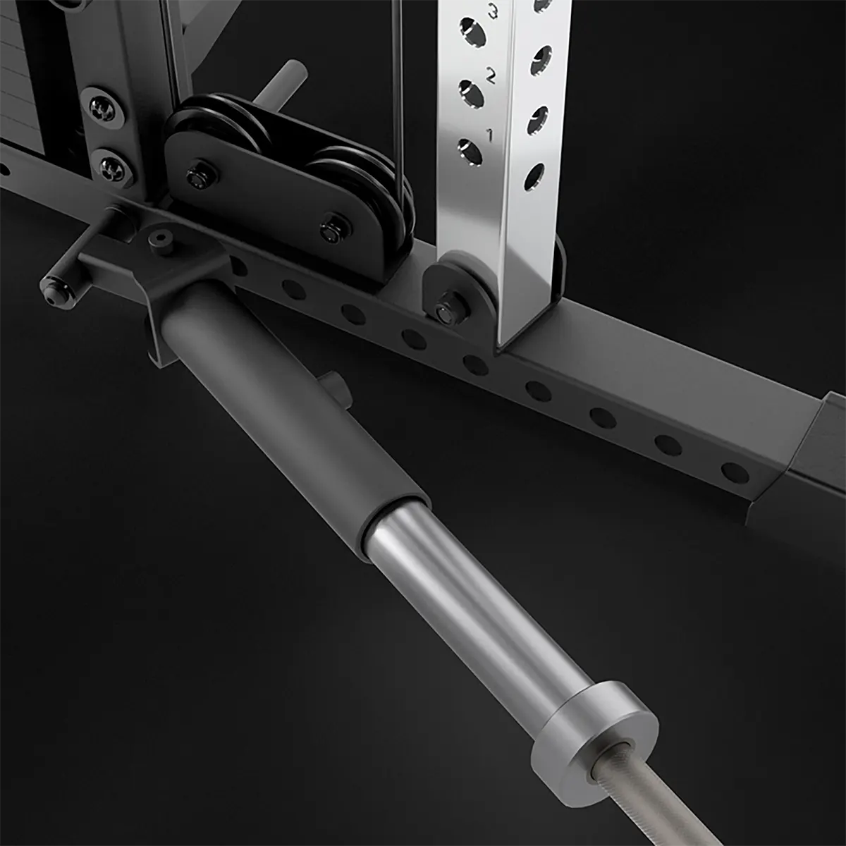 ✅ Die Highlights im Überblick🏋️♂️ Integriertes Half Rack mit verchromten Front-Tubes, gelaserter Skalierung & J-Hooks