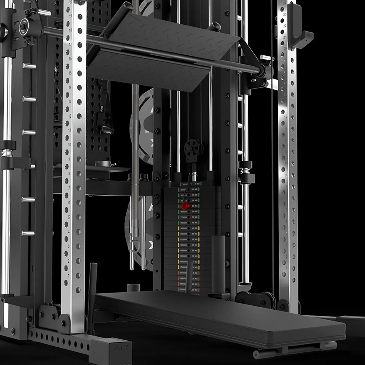 Die ATX® Monster 2.0 ist eine Kraftstation der Superlative 💥 – entwickelt für Athletinnen & Athleten mit höchsten Ansprüchen an Leistungsfähigkeit, Vielseitigkeit und Qualität. Auf beeindruckend kompaktem Raum kombiniert sie Half Rack, Multipresse, Seilzugstation, Beinpresse, Dips-Barren, Core-Trainer, Zubehör-Storage und mehr – zertifiziert für den Studioeinsatz!