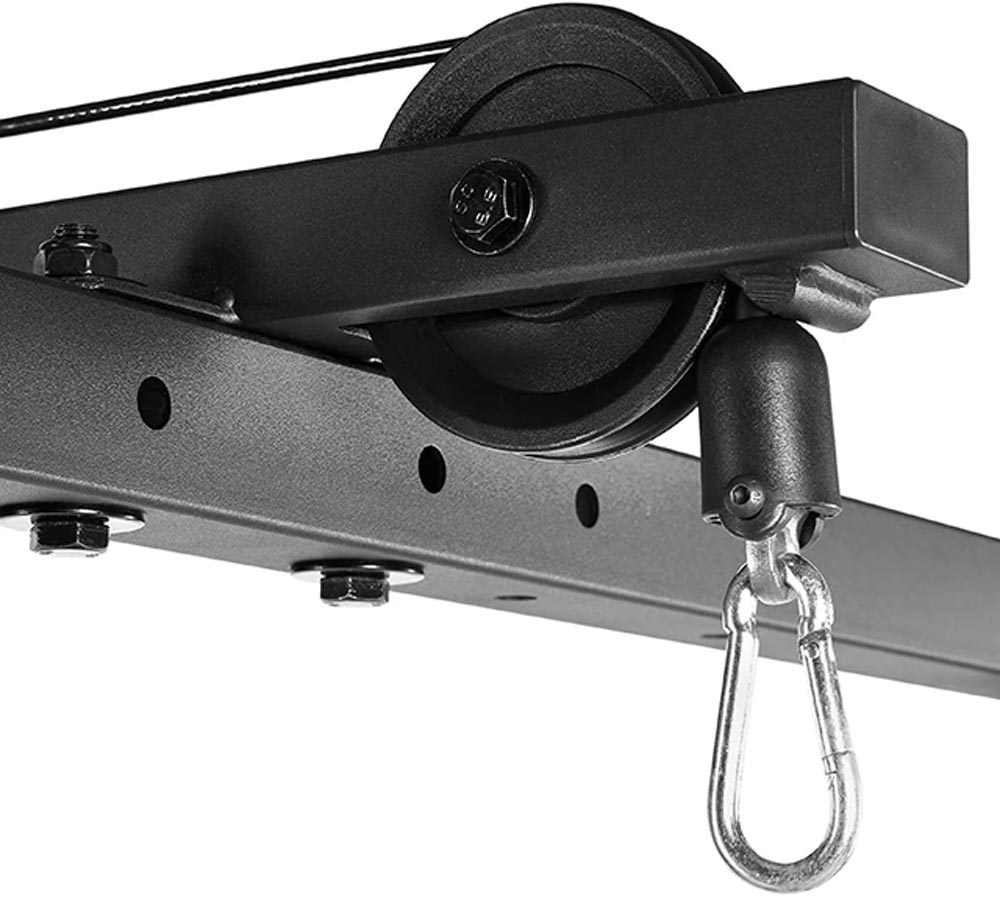 Auf einen Blick: - Latzug mit 100 kg Steckgewichte - Abstufung 5 kg ( 20 x 5 kg) - Direkte Gewichtsübersetzung 1:1 - Seidenweiche Laufeigenschaft dank präzisen Steckgewichten mit Gleitbuchsenführung - Kugelgelagerte Seilrollen - Obere und untere Zugrolle ohne Umbau nutzbar - Dehnungsfreie Stahlseile mit schwarzer Kunststoff-Schutzummantelung - Mit Fußbleche zum Abstützen beim sitzenden Rudern - komfortable Polsterrollen variabel in der Höhe verstellbar - inkl. Verlängerungskette zum Einhängen diverser Zuggriffe und zum Einstellen der optimalen Zugposition - inkl. 2 Karabinerhaken - Quality Products Designed in Germany - Zertifiziert nach EN 20957 I.II.IV Class H