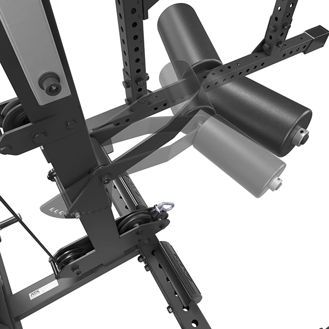 individuell höhenverstellbare und abklappbare Beinstütze - für eine sichere Fixierung bei schweren Zugübungen von Oben