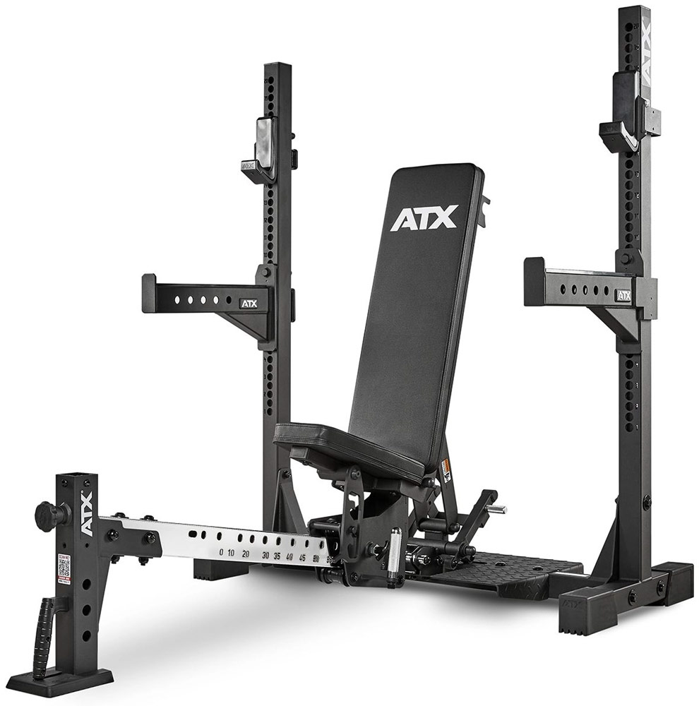 Diese Multi-Drückerbank von ATX® ermöglicht das Einstellen von 15 unterschiedliche Positionswinkel und ermölicht somit alle relevanten Drückpositionen mit der Langhantel - von negatives Bankdrücken über Flachbankdrücken bis zum Nackendrücken. - und das alles bei professioneller und sicherer Ausführung.