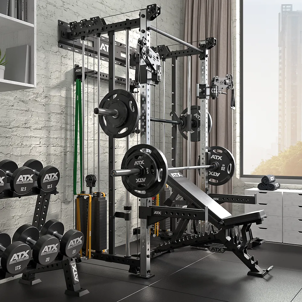 ATX® WALL CABLE SMITH RACK MIT MULTIPRESSE UND 2 x 90 KG STECKGEWICHTEN