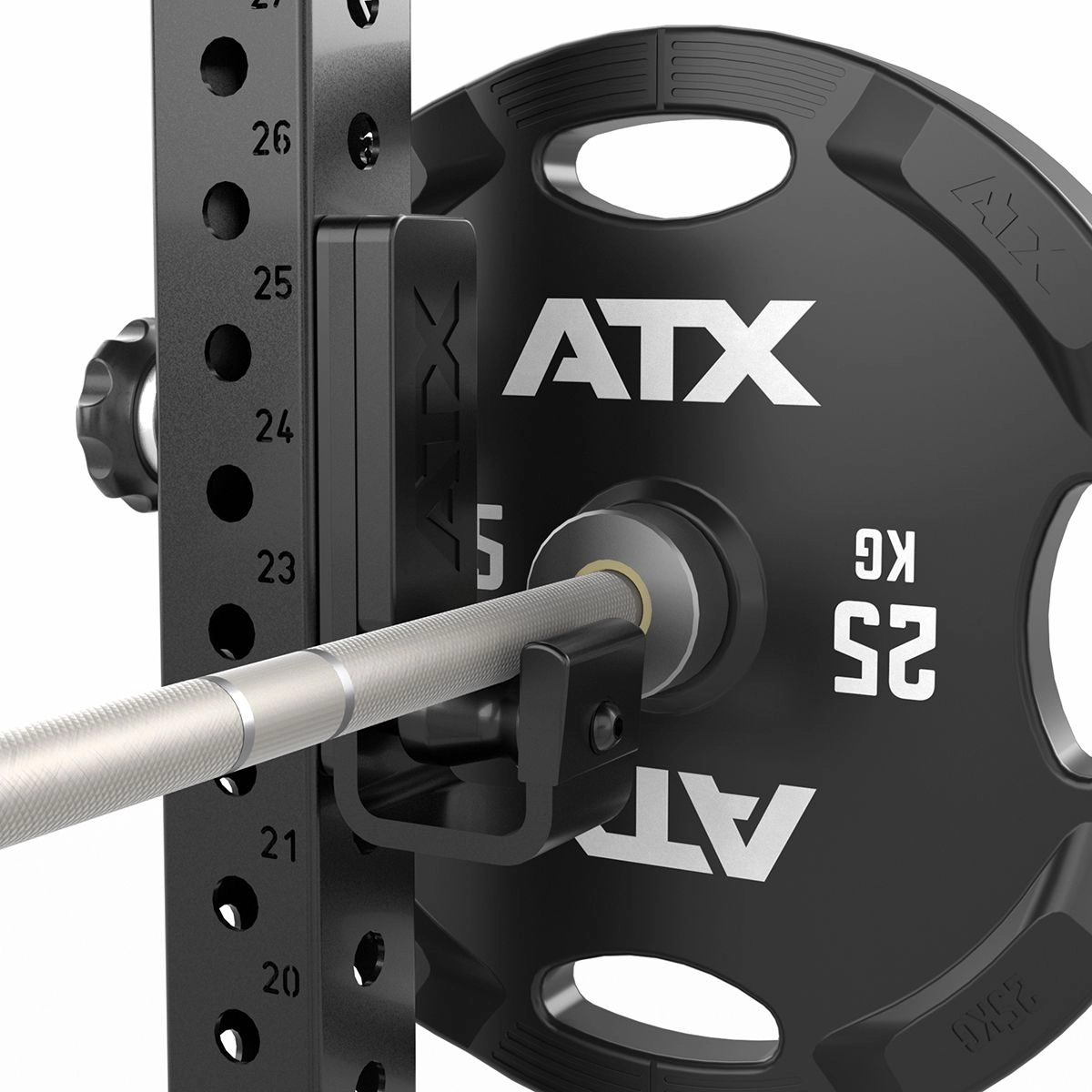 positionieren bzw. die Hantel exakt auszurichten. Gefertigt aus durchgehenden 10 mm starken Bandstahl und mit allseitigen Kantenschutz umgeben, sind diese J-Cups auf allen ATX® Rig`s & Racks verwendbar.