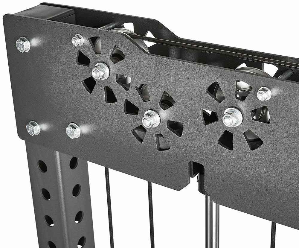 - Erstklassige seidenweiche Laufeigenschaften dank doppelt kugelgelagerter Aluminiumrollen und Präzisions-Steckgewichtsführung