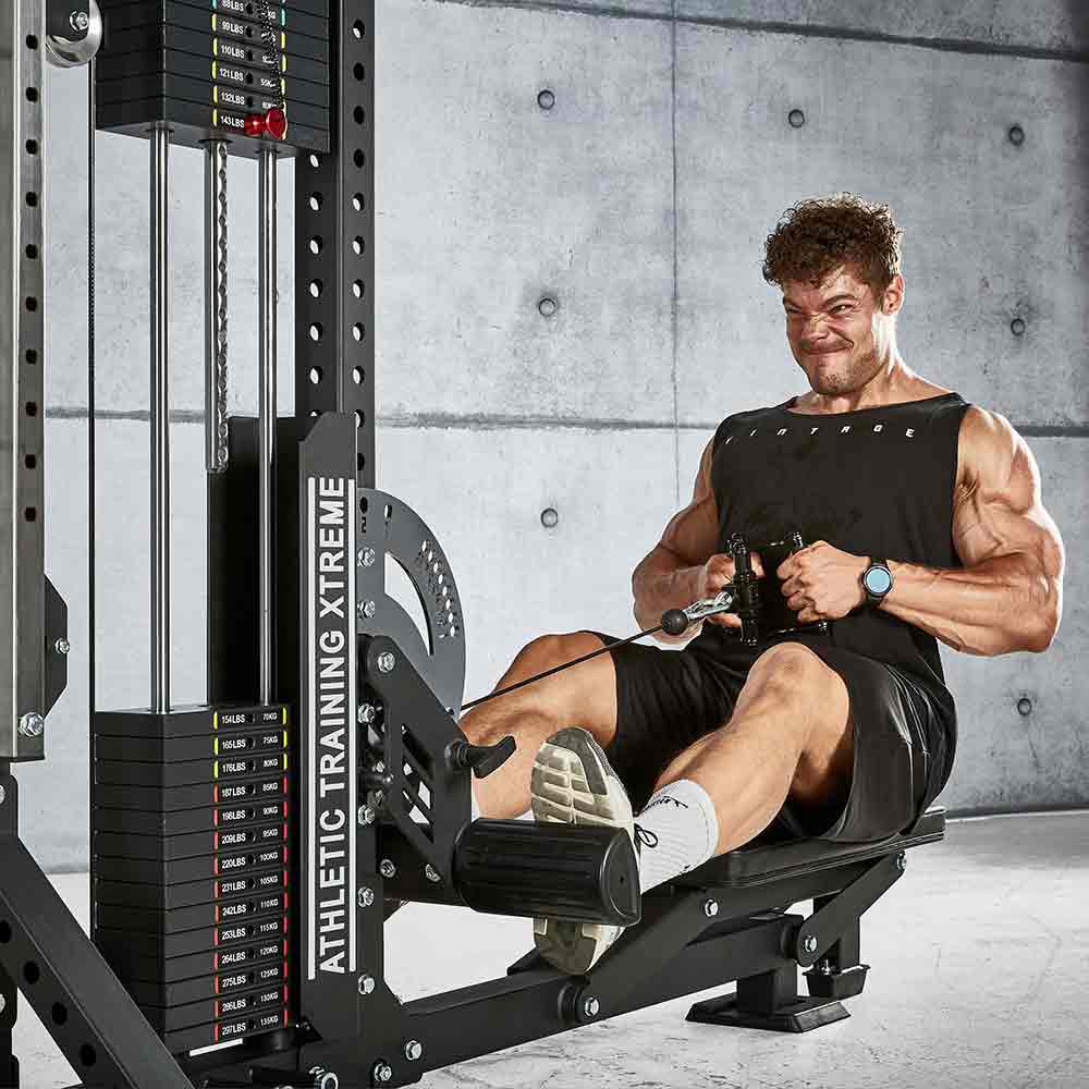 Der schwere Gewichtsblock mit 135 kg Steckgewichten erlaubt selbst starken Athletinnen und Athleten schweres Latzug- und Rudertraining für maximale Trainingsergebnisse.
