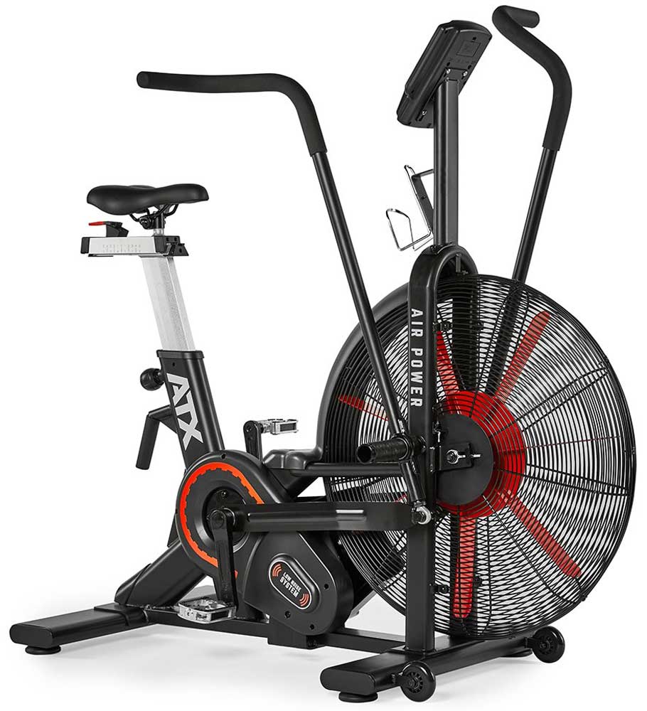 Das Air Power Bike von ATX® ist ein hochwertiges HIIT-Bike mit dualer Funktionsweise. Die Armhebel aktivieren den Oberkörper, während die Tretpedale durch die klassische Tretbewegung die Beine und den Unterkörper einbeziehen. Das Dual-Action-System synchronisiert die Bewegungen von Armen und Beinen und beansprucht somit den gesamten Körper. Der Widerstand wird ausschließlich durch Luftwiderstand erzeugt, der durch die Bewegung des Nutzers den Antrieb des integrierten Rotors aktiviert. Je höher die Umdrehungsfrequenz, desto intensiver das Training – die Geschwindigkeit bestimmt somit die Intensität und Belastungsstufe.