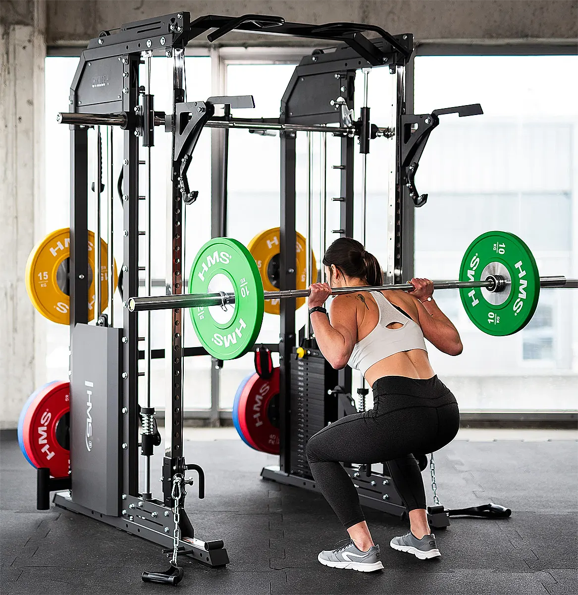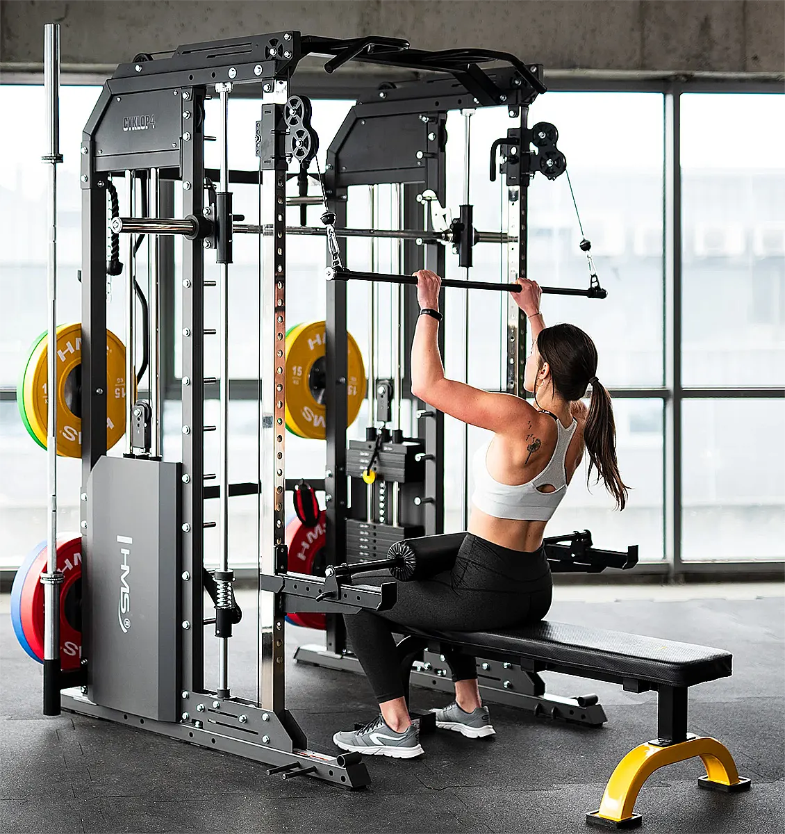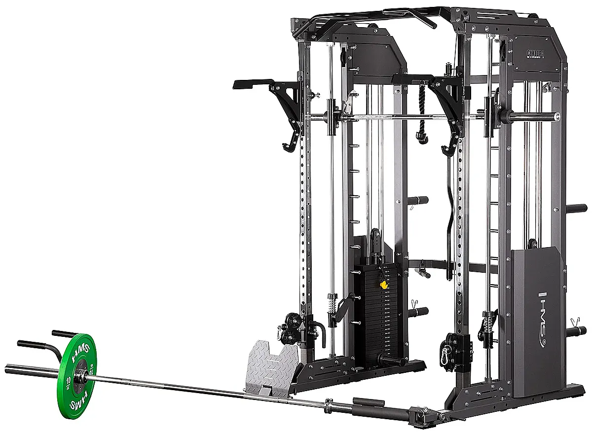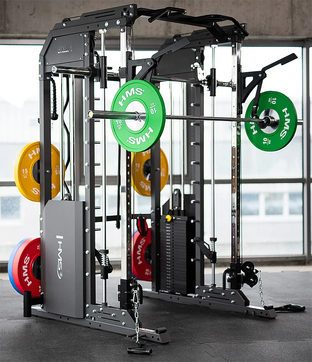 Der CYKLOP 4 von HMS vereint die Vorteile einer Multipresse (Smith Machine), einer vollwertigen Kraftstation und eines funktionalen Kabelzug-Systems – und bietet dir damit ein komplettes Fitnessstudio in nur einem Gerät.