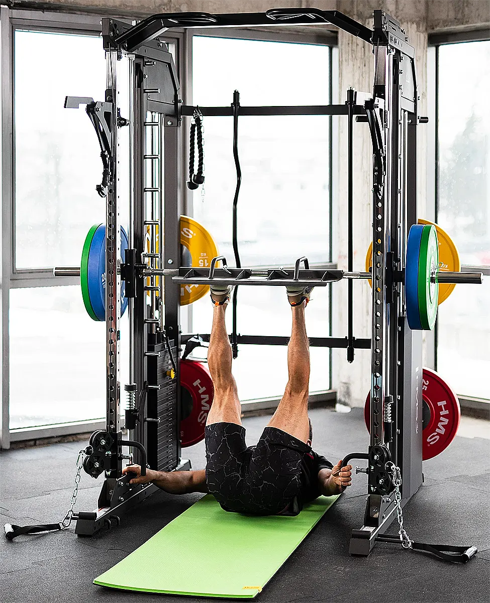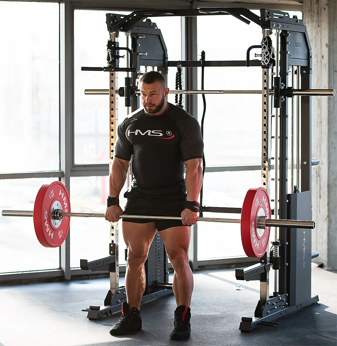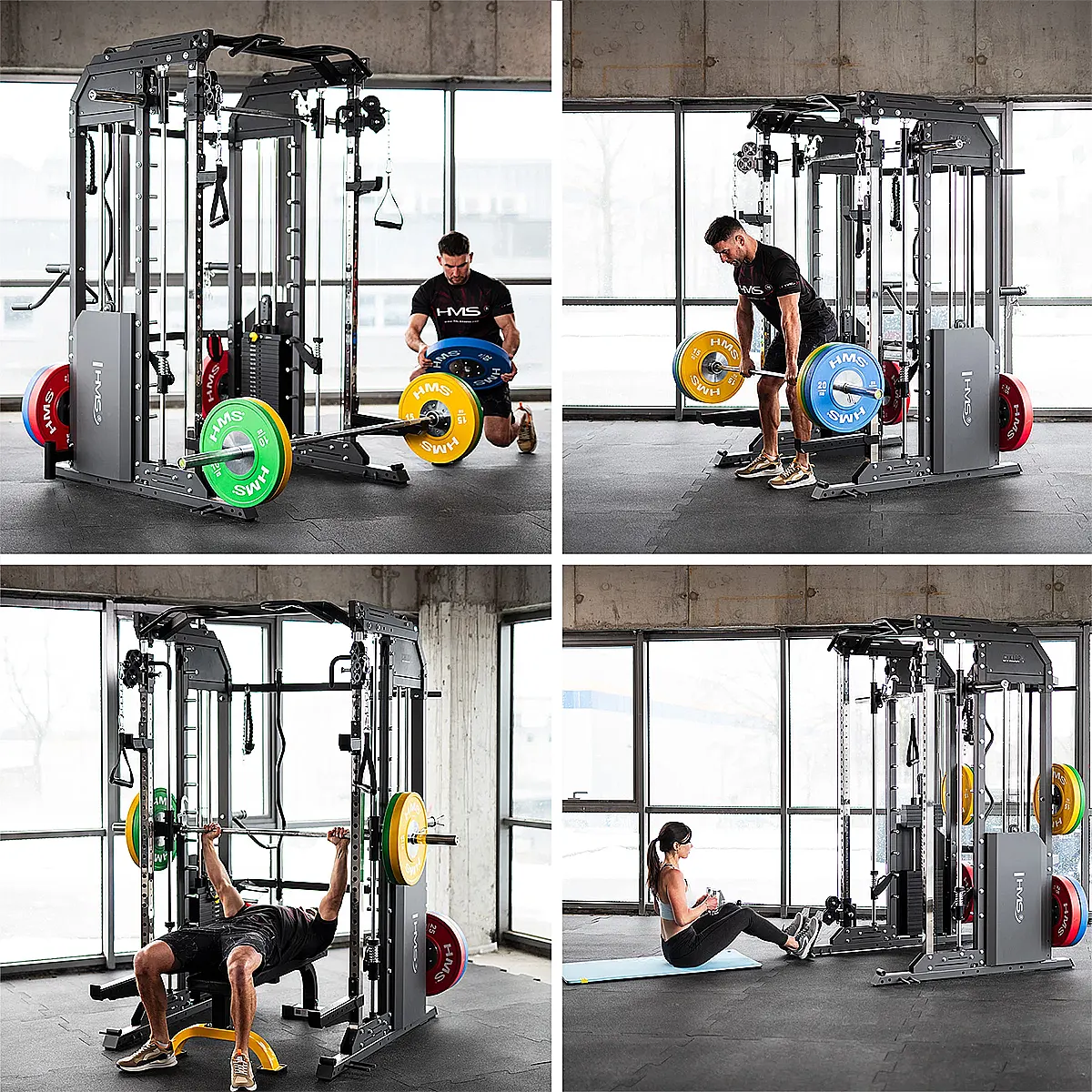 Der CYKLOP 4 von HMS vereint die Vorteile einer Multipresse (Smith Machine), einer vollwertigen Kraftstation und eines funktionalen Kabelzug-Systems – und bietet dir damit ein komplettes Fitnessstudio in nur einem Gerät.