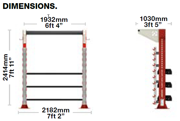28 m² - minimale Fläche, die für bis zu 4 Trainierende benötigt wird.69 m² - optimale Fläche zum Training am OCTAGON HIT HUB - SINGLE SIDED, ONE BAY.