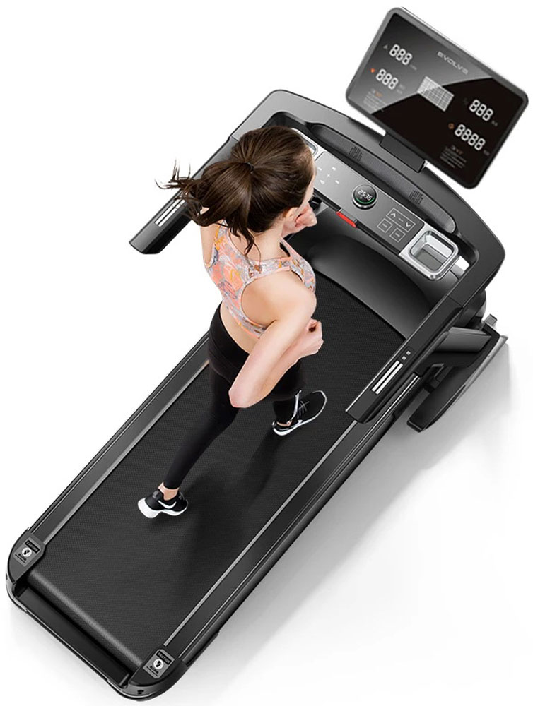 Evolve HT 350 LED Laufband - DC max. 4,5-PS-Motor, LED-Bildschirm, MP3-Eingang und USB-Anschluss zum Aufladen des Mobiltelefons. Faltbarer Rahmen mit hydraulischem Slow-Drop-System und Transporträdern zur einfachen Aufbewahrung. Bluetooth-HiFi-integrierte Lautsprecher, 150 kg maximales Benutzergewicht, 12 integrierte + 1 Benutzerprogramm und 1 BMI-Stufentest, bis zu 18,8 km/h Geschwindigkeit - diese und viele weitere Funktionen bieten Ihnen Unterhaltung, Leistung zu einem erschwinglichen Preis. Evolve HT 350 ist eine ausgezeichnete Wahl, die Sie motiviert und herausgefordert hält.
