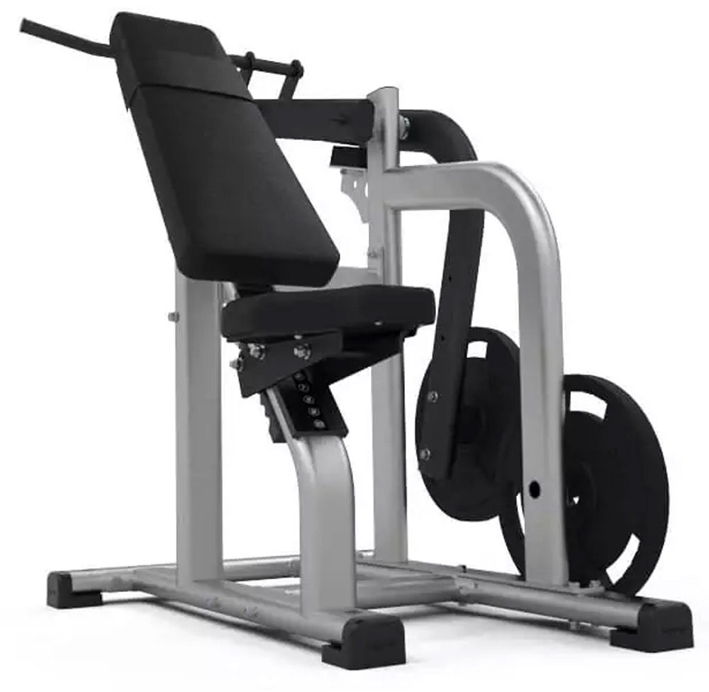 Das Exigo Seated Calf Raise ist perfekt, um die Wadenmuskulatur zu trainieren. Die Hantelscheibenaufnahme ist angewinkelt, um das Be- und Entladen zu erleichte…