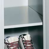 Die Evolo-Aufbewahrungsbox: Kommt unter der Straßen-/Berufskleidungsausführung zum Einsatz (= zwei Abteile für eine Person) und kann nur vom Schranknutzer geöffnet werden. Innen erschließt sie bisher ungenutzten Stauraum, außen bietet sie einen sauberen Bodenabschluss und reduziert die zu reinigende Bodenfläche erheblich!