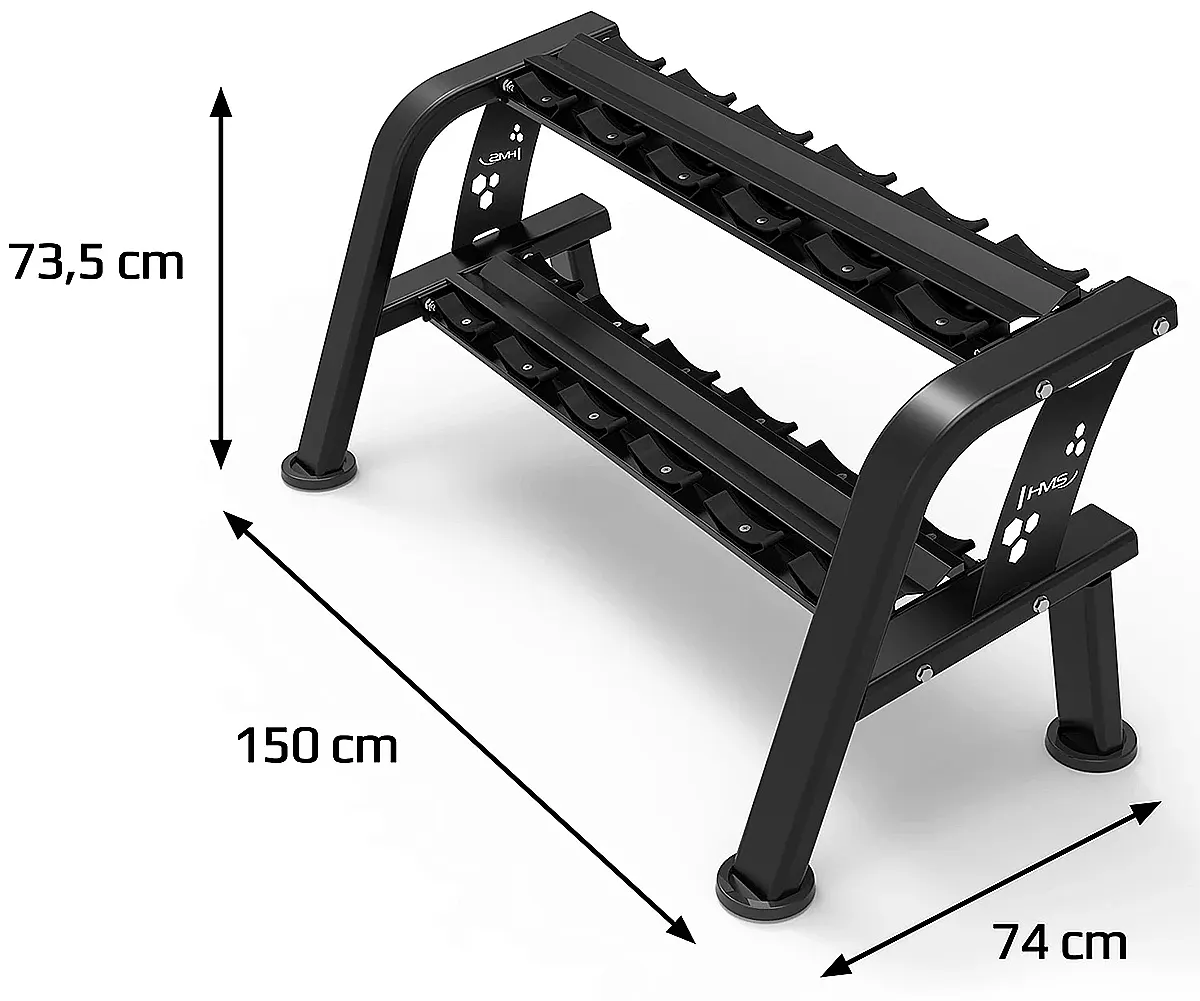 Mit seinem platzsparenden Doppelstock-System, einer robusten Stahlkonstruktion und den praktischen Halbschalen-Ablagen bietet er maximale Übersichtlichkeit und Komfort – egal ob im Homegym, Fitnessstudio oder Vereinsbereich.