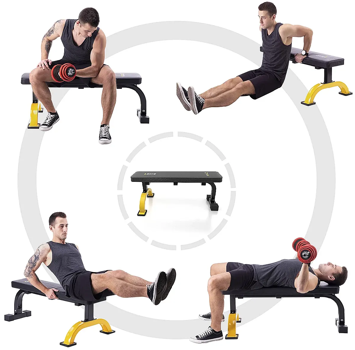 Diese charakteristische Optik liefert eine stilvolle Ergänzung für jedes moderne Homegym und hebt sich optisch von Standard-Flachbänken ab.