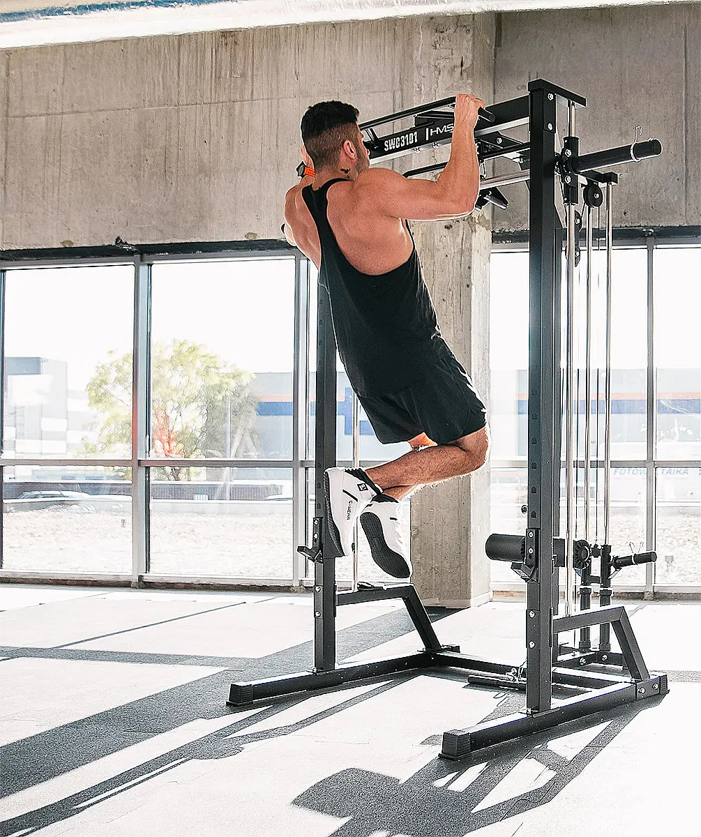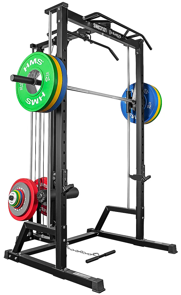 Die SWC3101 ist eine hochmoderne Kombi-Trainingsstation, die Smith-Maschine, Half-Rack und Plate-Loaded Kabelzug in einem Gerät vereint. Damit bietet sie alles, was ambitionierte Heimsportler, Personal Trainer und Studios mit begrenztem Platz benötigen: