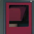 - Türen rechts angeschlagen, in Drehbolzen gelagert, oben und unten mit je 1 Lochrosette, eingestanztem Etikettenrahmen und Drehriegelverschluss für Vorhangschloss