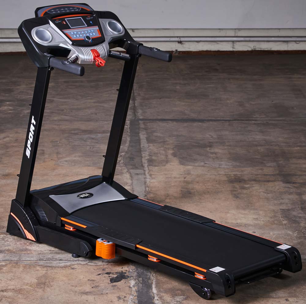 WBA Laufband TLR-6H Ein Laufband gilt als Basisausstattung eines jeden Home-Gyms! Das WBA Laufband überzeugt durch schlankes Design und hohe Qualität. Das eingebaute Dämpfsystem ermöglicht ein absolut geräuscharmes Lauf-Erlebnis. Transportrollen und die einklappbare Lauffläche stellen sicher, dass das Laufband einfach her- und weggeräumt werden kann. Die hochwertige Displayanzeige und die höhenverstellbare Lauffläche holen das Maximum aus dem Indoor-Lauftraining heraus. Features wie ein AUX und USB Anschluss sowie die integrierte Handpulsmessung heben das Lauferlebnis auf ein gänzlich neues Level. Zudem lassen die 12 vorinstallierten Programme sowohl für Anfänger als auch für Fortgeschrittene ein progressives und effizientes Lauftraining zu.